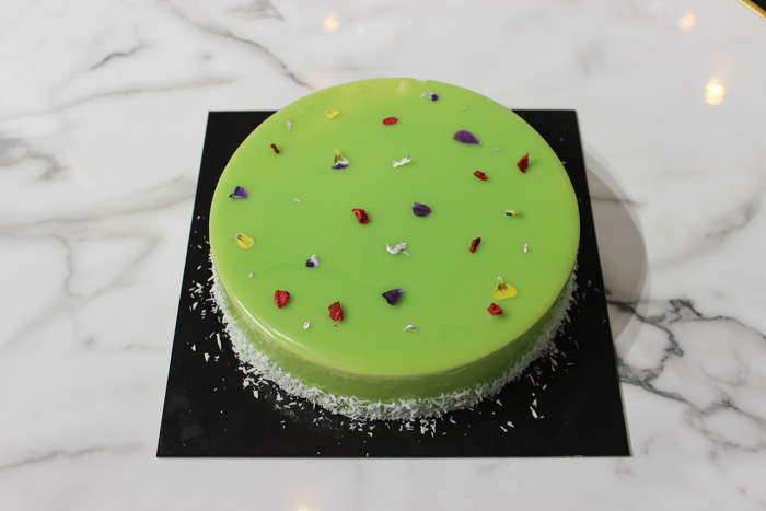 Biscuit citron vert Croustillant muesli fruits rouges Bavaroise matcha Compotée fruit rouge/citron vert Ganache montée Matcha