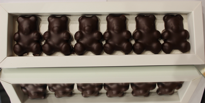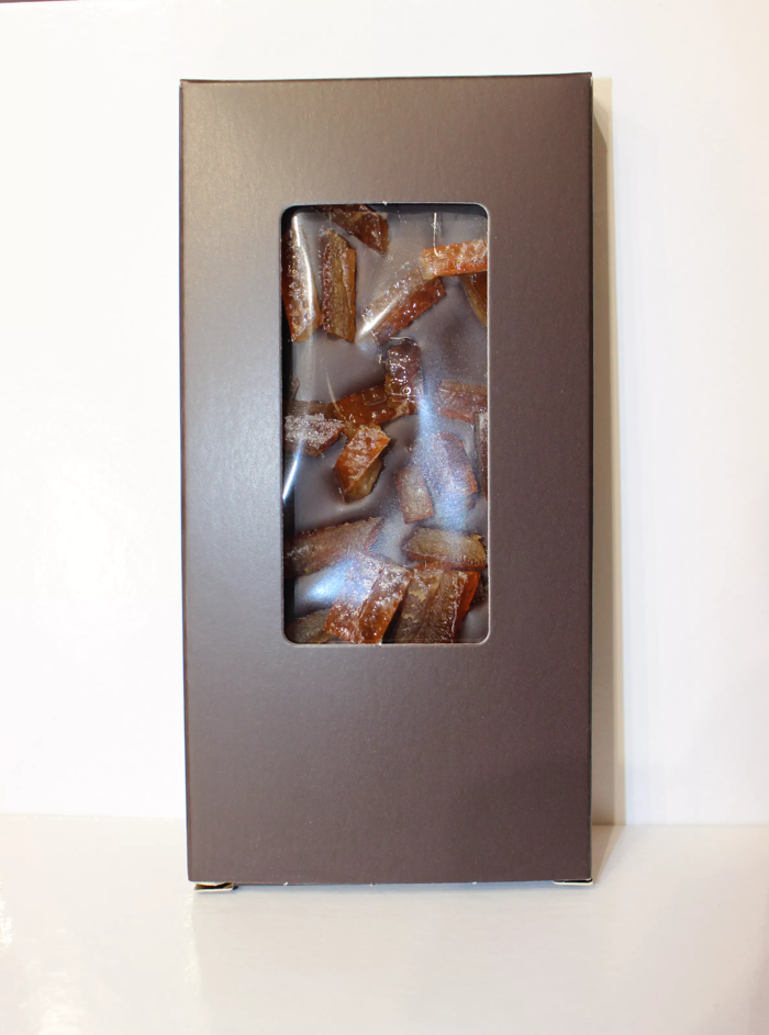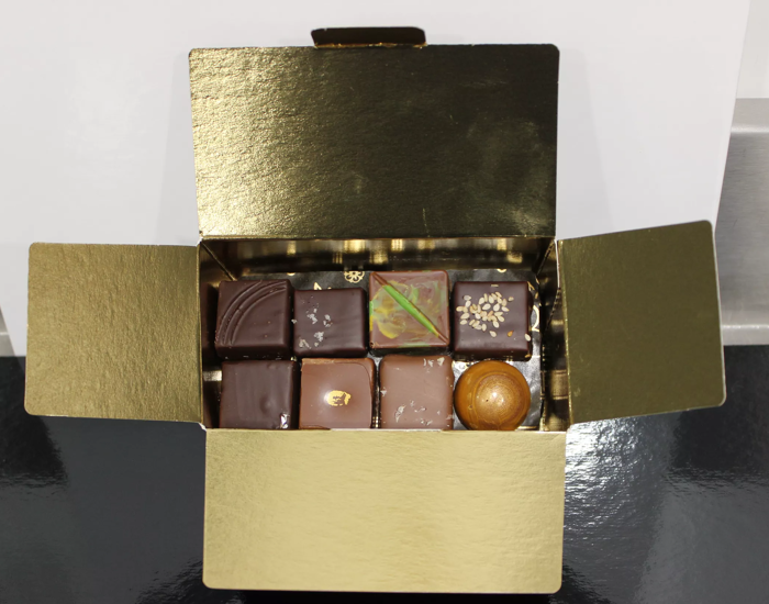 Bonbon au praliné, caramel framboise, praliné croustillant